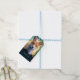 Obrigado, etiquetas de presentes com uma imagem colorida da vida selvagem de uma raposa vermelha que se deita em gramíneas verdes. Esta criatura fofinha tem pelo macio e olhos gentis. A imagem tem uma sensação mágica sonhadora.