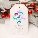 Etiqueta de presente de Natal elegante com silhueta de renas em cores pastel doces. A letra do roteiro diz "Feliz Natal".