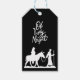 Religioso, preto e branco, o presente de Natal marca o design preto e branco moderno com o roteiro escrito à mão "Oh Santa Noite". Tag moderna, na moda e elegante de Natal religioso.