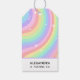 Make your party favors pop with these Retro Pastel Rainbow Gift Tags! Featuring a whimsical wavy pattern in soft sorbet colors and a crisp white personalized base, these tags are the perfect finishing touch for a 6th birthday or 'Groovy' themed celebration. High-quality print with a stylish lavender accent line. Simply tie them to your favor bags or boxes to delight your guests! Part of our best-selling Pastel Rainbow collection.