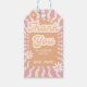 Uma elegante etiqueta de presente de obrigado-você que apresenta um padrão de onda solar retrógrado rosa com margaridas eternos.