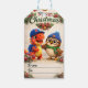 Festive Christmas gift features our favourite duo all bundled up for the snow surrounded by holiday greenery and winter berries with Rex in his signature cap and hoot in a cozy neat Benny and scarf. This design brings a touch of prehistoric charm to your holiday wrapping the vintage style Merry Christmas lettering and convenient too and from lines make it the perfect finishing touch for present presents under the tree spread some Jurassic joy this holiday season with Rex and hoot.