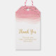 Eleve sua celebração com esta etiqueta de presente de agradecimento rosa e dourada elegante. Com suaves ondas de aguarela cor-de-rosa sobrepostas com delicados acentos de confete dourado, este design traz um toque moderno e atemporal para qualquer evento.