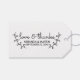 Rustic Laurels Wedding Favor Gift Tag com louros rústicos desenhados à mão com a palavra "amor e obrigados" no estilo de letra da caligrafia moderna e detalhes no estilo de letra sans serif moderno. Perfeito para casamento, chá de fraldas, festa de aniversário, festa de solteira e qualquer ocasião especial.
