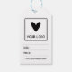 Etiquetas de preço branco minimalistas para seus itens feitos à mão, onde você pode adicionar seu logotipo, tamanho, preço, site, código QR e seu identificador de mídia social em fontes pretas contra um fundo branco.