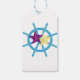Blue shipwheel with a yellow and purple starfish for a cute nautical vibe.