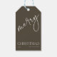 Add a refined touch to your holiday wrapping with these modern Christmas gift tags featuring clean white calligraphy on a deep olive background. Perfect for labeling Christmas presents or festive gift baskets, their minimalist design feels both classic and contemporary. Personalize with your family name or holiday message for a custom finish that stands out with timeless elegance. Personalize yours today.