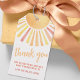 Boho Sunshine Sun Obrigado Por Dar Etiquetas. Esta etiqueta de "Obrigado" é uma forma alegre e vibrante de expressar gratidão, com um sol brilhante no topo com "Obrigado" em um guião fluente abaixo dela. Uma pequena nota de apreço, junto com o nome da família, completa o design, fazer pessoal e sincero. A parte de trás da etiqueta também exibe o sol, adicionando uma explosão extra de calor e cor. Esta etiqueta funciona perfeitamente para uma festa do primeiro aniversario "Primeira viagem ao redor do Sol" ou até para um chá de fraldas "Aqui vem o Sol". As cores clássicas do sol amarelo, laranja e uma dica de vermelho dão a ela um eterno e um sentimento neutro em relação ao gênero, fazer-o ideal para celebrar um aniversariante ou uma menina em qualquer celebração cheia de sol.