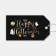 Na moda e ouro moderno e design de Halloween preto de Shelby Allison apresentando pequenos personagens brancos e assustadores em torno das palavras "Feliz Halloween".
