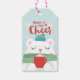 Ilustração do inverno bonito de um urso polar vestindo um cachecol verde e um chapéu azul enquanto segurava uma xícara vermelha de cacau quente sobre um fundo azul-claro do inverno. Design por Shelby Allison. Personalize esses presentes adoráveis com sua saudação e assinatura.