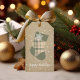 Esta adorável etiqueta de presente foi projetada para parecer feita à mão. Apresenta um estoque de natal em um padrão original de tartan com tons de sábio verde e rosa macio. O fundo é a cor do papel kraft pontilhado com pequenos flocos de neve. O texto do script de 'Feriados Felizes' é opcional e pode ser excluído ou alterado para sua saudação favorita. Procure ID209, ID210 e ID211 para ver a gama completa de cores e produtos adicionais com este padrão de início.