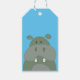 Festa de aniversário de etiquetas de mesa hippo para a decoração de aniversário. Um design de decoração fofo para diversão infantil. O hipopótamo seria excelente para uma festa do tema do zoológico ou se a criança ama o hipopótamo. O fundo é azul e o hipopótamo está em tons de verde. Com espaço para escrever aqui tem papel de empacotamento correspondente também em loja.