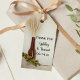 Obrigado seus convidados para assistir a seu tema casual de cerveja, chá de panela, festa de noivado ou cerimônia de casamento e recepção quando você coloca a charmosa Tag de Favor de Casamento de Brincadeira e Saltos a favor do partido ou de um pequeno presente. Estas etiquetas de favorecimento ao estilo rústico personalizado apresentam uma fotografia escura de uma garrafa de cerveja de vidro castanho com trigo seco, salto verde e um véu branco. Inspo perfeito para o casal que estará servindo cervejas artesanatos ou microcervejas no evento ou reunião.