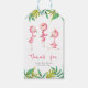 Adorável obrigado flamingo tropical você marca com cores rosa e verde. Use-o no seu chá de fraldas para incluir com seus favores. Personalize o texto com suas próprias informações. Ilustrada e projetada por Patricia Alvarez.