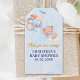 Lindo diseño de Etiqueta de Regalos para fiesta de Baby Shower con Tematica de Oso "We can Bearly Wait baby" es un diseño lindo con tonos Azules y la ilustracion de un oso con globos cafes. En el diseño puedes añadir nombre y fecha de tu fiesta. No Lo Pienses y adquiere este lindo diseño ahora.