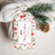 Estas lindas etiquetas de presentes de Natal apresentam um padrão elegante de flores vermelhas, pintadas manualmente, com coloração aquática, com bagas ocas, pinecones e verde em fundo branco com um 'Feliz Natal' em um elegante roteiro escrito à mão | caligrafia. A parte de trás das etiquetas de presentes inclui uma foto para personalização. Localize itens correspondentes na Coleção de Natal Botânico de inverno Vermelho Feriado.