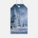 "Send warm wishes with this beautiful customizable gift tag, perfect for all your holiday presents and winter gifts. The serene design features a picturesque snowy landscape, showcasing majestic frosted trees. Softly falling snow and sparkling flakes create an ethereal winter wonderland atmosphere, evoking the peaceful beauty of a quiet winter's day.