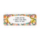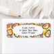 Essas etiquetas de endereço de retorno têm um design moderno do século médio de círculos "deformados" em cores retrorreflectoras que se sobrepõem e se repetem na design.