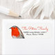 Uma bela etiqueta de correio botânico de pássaros para o seu posto de Natal, apresentando uma bela ilustração de pássaros roxos vermelhos pintados em um céu branco de neve. Arte original de Caroline Bonne Müller