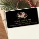 Esta elegante etiqueta de endereço de retorno de feriado "Paz, Amor e Joy" apresenta um buquê de inverno moderno e mínimo de cor d'água em um fundo preto.