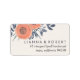 Nossas etiquetas de endereço de retorno floral modernas e de tamanho generoso incluem flores de papoila-aquática em pêssego de coral-chico com folhas e botões em cinzas azuis empoeiradas e verde-caçador desbotado. Adicione seus detalhes de endereço em cinzas de carvão e em caracteres azuis de meia-noite. Coordena-se com a nossa suíte de convites de casamento Peach Poppies, disponível na coleção nesta página.