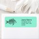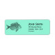 Etiquetas de endereço personalizadas de tendência especial com design de uma ilustração de peixe vintage em preto contra uma cor personalizável de na moda aqua clássica. O texto é perfeitamente personalizável para incluir seus próprios detalhes pessoais.