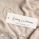 Roupas, acessórios, jóias, boutique, etc. personalizados e elegantes em creme claro, etiqueta pendente de rótulo branco com um visual minimalista com o seu nome ou marca em uma letra de assinatura estilosa. Adicione texto adicional abaixo e no verso em tipografia moderna simples. Por favor, note que a Zazzle não faz o furo.