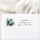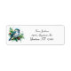 Uma aquarela e uma pintura em forma de splatter de um pássaro giro e pequeno, empoleirado em um galho verde com bagas vermelhas cria uma charmosa etiqueta de endereço de feriado. Perfeito para quem ama pássaros e natureza.