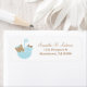 Presentes adoráveis em um guarda-chuva, faça o design de etiqueta de retorno de endereço perfeito para seu próximo chá de fraldas, anúncios de nascimento de bebês ou festa de aniversário de alguém pequeno. Arte pelo Estúdio de Cacau