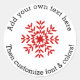 Adicione facilmente seu próprio texto a esses adesivos personalizados com um floco de neve vermelho brilhante.