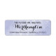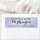 Este simples, mas elegante, rótulo de endereço de retorno diz: "O futuro Sr. e Sra. com o nome é uma fonte com estilo caligrafia." O fundo é lavanda roxo com uma marca d'água úmida. Dê seu noivado, salve a data, o casamento ou agradeça aos cartões um toque pessoal com essas etiquetas de endereço.