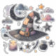 Entra num mundo sonhador de feitiços e poeira estelar com essa bruxa patchada encantadora cercada por uma constelação mágica de elementos celestes. Apresentando texturas feitas à mão e uma paleta aconchegante e inspirada na vintagem, a design apresenta uma lua crescente, estrelas brilhantes, nuvens brancas e acessórios místicos como poção, pena e vela. O contraste lúdico entre os pastéis macios e os tons cósmicos profundos cria um equilíbrio cativante de charme e mistério, fazer-o perfeito para as vibrações do outono, amantes do Halloween, ou fãs de estética de cottagecore brutal. Quer imaginem este chapéu descansando em uma apotearia cheia de poção ou flutuando num céu estrelado, ele convida vocês a explorar o lado mais suave e caprichoso da magia. Cada detalhe parece uma página de um livro elegante, costurado de maravilha. A IA gerou trabalho de arte.