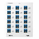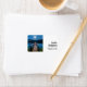 Etiquetas de endereço com uma bela fotografia de um píer de madeira que se estende sobre um lago calmo. O céu noturno coberto de estrelas e uma bela lua de cheio.