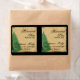 Esta etiqueta divertida é perfeita para o seu fazer de velas, etiqueta de jarro de comida ou outro projeto DIY. O fundo é preto com uma inserção de pergaminho com quatro embelezamentos de canto rústico. À esquerda há uma ilustração de um pinheiro verde.