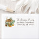 Rótulo russo com uma bela natureza inspirada, que cai no arranjo da floresta de inverno com flores silvestres, cogumelo-do-mato, folhas de pinecone e folhas de outono. Personalizado feito e personalizado com nome da família e endereço de retorno.