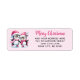 Estas etiquetas de endereço de volta de Natal cor-de-rosa personalizadas apresentam o "Feliz Natal" dizendo em letra de script e um casal de patinadores de gelo de pinguins bonitos em roupa cor-de-rosa. O modelo facilita a digitação do seu endereço antes de fazer o pedido.