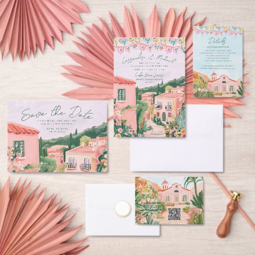 Etiqueta Pink Mexican Town Destination Wedding