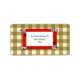 Um rótulo que ilustra quatro lápis vermelhos que formam um retângulo no centro. O fundo é bronzeado gingham. Personalize com seu nome.