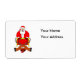 Um papai noel gordo preso no trenó com uma rena vestida.