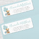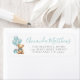 Etiqueta de Endereço de Retorno de Chá de fraldas "Podemos aguardar". Esta adorável etiqueta de endereço de retorno apresenta um ursinho de pelúcia bronzeado com um arco azul lacrimogêneo, segurando balões de cor d'água lacrimogênea, colocados no lado esquerdo. O lado direito exibe seu nome em um script azul suave e elegante com o endereço em uma fonte de cinza clássica. O charmoso design, completo com uma caixa de presentes, é perfeito para o chá de fraldas de um bebê. A mistura de fontes divertidas e elegantes adiciona um toque doce, e você pode personalizar as cores e o fundo para corresponder ao seu tema. Todo o texto, fontes e cores podem ser personalizados para ajustado do estilo do evento.