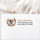 O lado esquerdo dessas etiquetas de endereço de retorno apresenta um retrato de um lindo cachorro pintor inglês. A imagem é fechada dentro de uma bonito coroa floral e foliar de outono em tons de marrom, bronzeado e creme. Seu texto personalizado está em preto e marrom-ouro à direita.