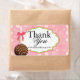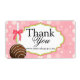 © 2013 Designs socialitas. Pop de bolo de chocolate branco com obrigado de design cor-de-rosa que você envia etiquetas. O fundo tem um padrão cor-de-rosa poka-ponto.