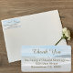 Esta linda cena de praia faz uma bela obrigado que você escreve. A mensagem Obrigado aparece no céu e o endereço de retorno aparece no oceano. Compaixão por direitos autorais