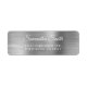 Etiquetas de endereço de retorno de luxo para seus cartões de agradecimento depois de sua comemoração de aniversário. A cor branca neste script elegante nesses rótulos de endereço de retorno pode ser alterada. Uma caligrafia elegante clássica emparelhada com uma fonte serif de todos os bonés. A aparência falsa de cinza prateada de metal escovado é criada com arte digital que impressão como uma foto.