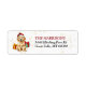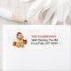 O lado esquerdo destas etiquetas de endereço de retorno de Férias divertidas apresenta uma imagem de um adorável filhote de Ouro Retriever vestindo um chapéu de Papai Noel vermelho e branco e sentado em frente a presentes de Natal embrulhados. Seu texto personalizado está em vermelho e preto à direita. Um sutil fundo de confete de ouro dá um pouco de brilho de Natal.
