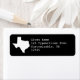 Mapa simples em branco da forma do estado do Texas com um rótulo de endereço em um estilo de fonte datilografado para suas informações de contato. Altere o estilo da fonte, tamanho e cor para criar seu próprio design. Você não precisa ficar com o tema preto e branco. Você também pode personalizar a cor do fundo.
