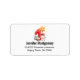 Etiquetas de endereço com uma imagem adorável, com uma vaca sorridente, com um balão de estrela dourada e um pouco de bolo e um presente.