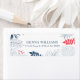 Flores tropicais e saem em azul-marinho e branco com sotaques vermelhos-corais, modelo personalizável.