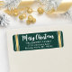 Adicione um toque de fim festivo aos envelopes de cartão de feriado com etiquetas de endereço verde, dourado e branco. Todo texto nesta modelo é simples de personalizar com qualquer texto, como Feliz Natal, Feliz Feriados, Saudações de Seasons, ou Feliz ano novo. Como opção, altere a saudação para seu nome e use o restante somente para o endereço. O design apresenta a caligrafia tradicional escrita à mão, o endereço clássico de retorno da tipografia da máquina de escrever e as faixas verticais de folha falsa modernas. Observe que o ouro é impresso a cor, não a folha metálica. Essas etiquetas únicas fazem um na moda adicional aos cartões de Natal e aos convites para festas de Natal.