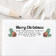 Adicione um toque de acabamento de na moda aos envelopes de cartão de feriado com essas etiquetas de endereço de retorno de feriado modernas. Todo o texto sobre esta modelo é simples de personalizar para incluir qualquer texto, como Feliz Natal, Feliz Férias, Saudações de Seasons, Cheers de Ano Novo, etc. Como opção, altere a tipografia do script para o nome da família e use o restante somente para o endereço. Design apresenta um caligrafia festiva de pinheiros com aquarelas e uma caligrafia de guião em fundo branco. Perfeito para cartões de Natal e convites para festas de férias.